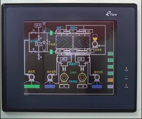 G120-45輥壓機(jī)是中型輥壓機(jī),主機(jī)系統(tǒng)構(gòu)成由機(jī)械工藝要求提出檢測(cè)點(diǎn)和控制點(diǎn)設(shè)計(jì)了新型自動(dòng)控制設(shè)備,簡(jiǎn)稱自控設(shè)備。自控設(shè)備采用深圳人機(jī)EVIEW系列工業(yè)彩色觸摸屏(見(jiàn)圖一),操作人員直接在觸摸屏上進(jìn)行各運(yùn)行參數(shù)設(shè)定:監(jiān)測(cè)點(diǎn)各瞬時(shí)數(shù)據(jù)的顯示:在彩色屏上可以監(jiān)察管道流量,機(jī)械運(yùn)動(dòng)以不同色彩的動(dòng)態(tài)圖形:本系統(tǒng)保護(hù)功能動(dòng)作,會(huì)自動(dòng)彈出“窗口”指明故障原因。